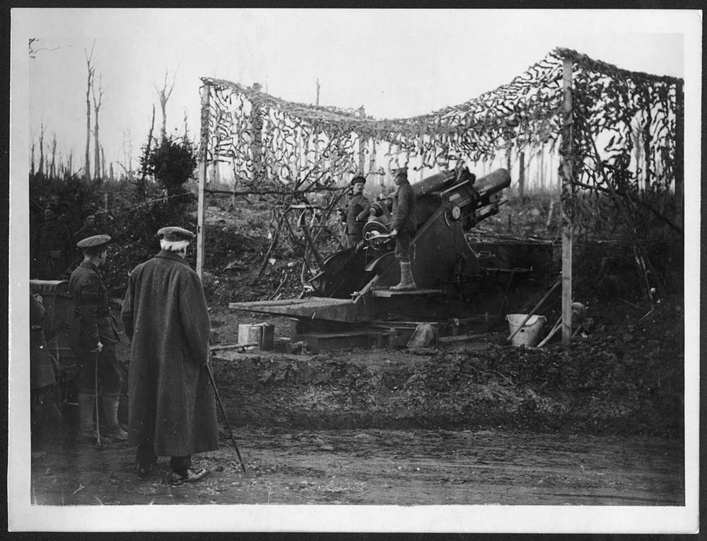 | First World War 'Official Photographs' > Other visitors > (1) D.1372 - Mr Balfour watching one of our big guns about to fire |